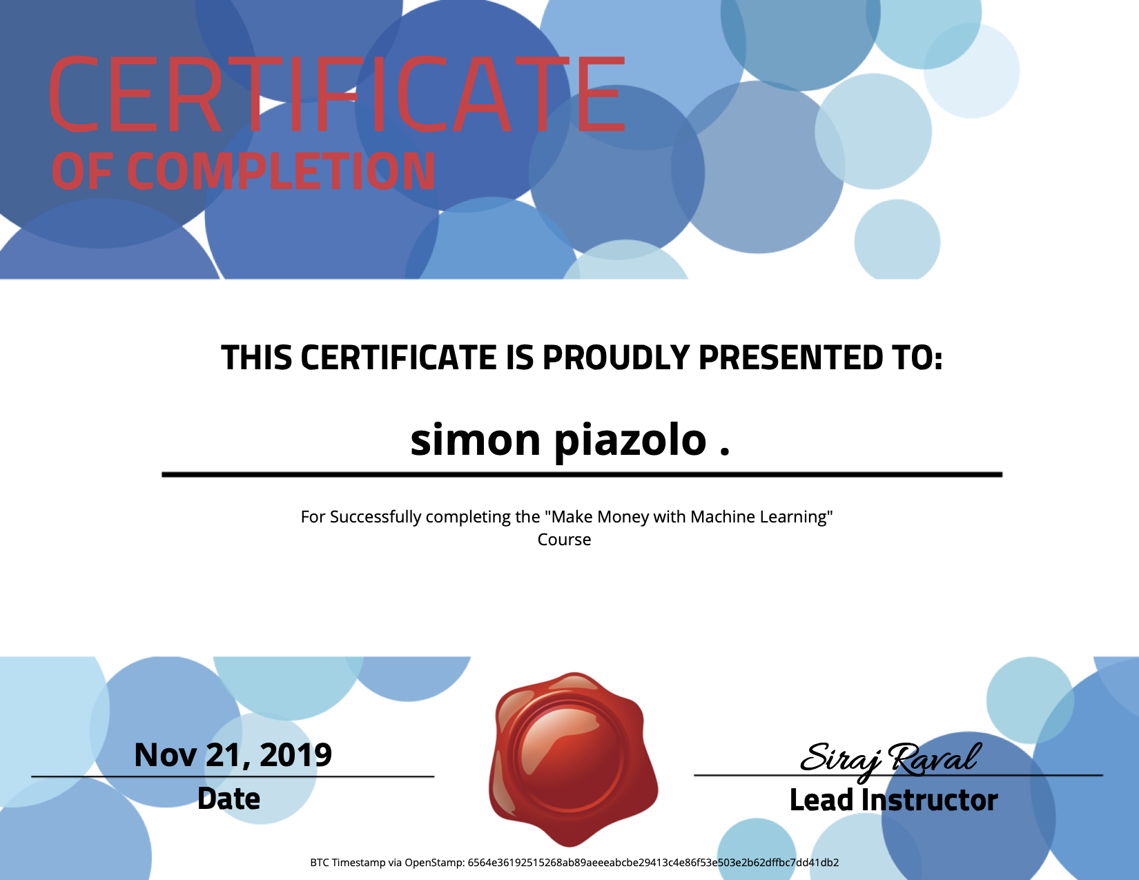During my internship at ZF's AI department, I participated in the online course, make money with machine learning. So I could deepen my knowledge about machine learning. In the course, we did learn a lot about the basics of machine learning and how to build an idea around ML. For that, we were introduced to web and app development. Also, we were encouraged to work as a team. So my team, from Germany and the US, developed as the final project an app that used a reinforcement model to predict when to trade shares.